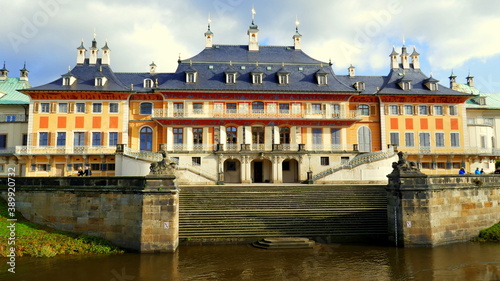 Naklejka premium Frontansicht des schönen Pillnitzer Schlosses in Sachsen an der Elbe im...
