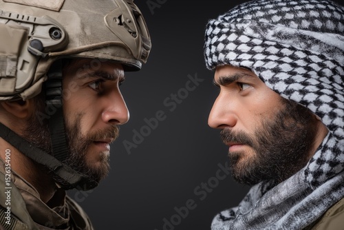 © Prazis Images, Obraz premium Frontline Standoff: Soldier Versus Terrorist