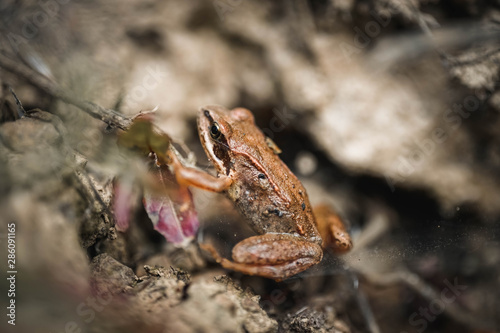 Naklejka premium Frosch, Makro, Reptil, macro, Hintergrund, warzen, braun, streifen