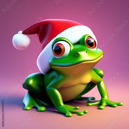 Obraz premium Frosch mit weihnachtmütze