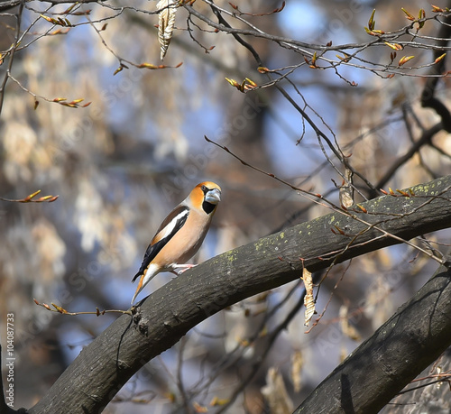 © fotonaturali, Fototapeta premium Frosone sul ramo nel bosco