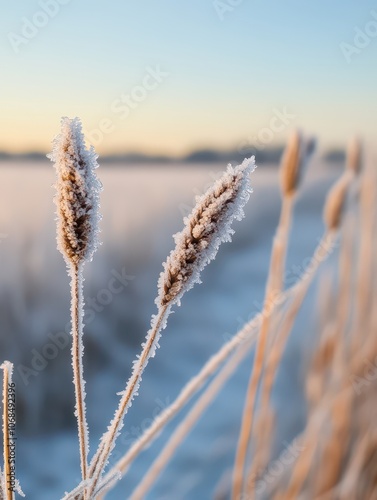 © Thi, Fototapeta premium Frost blankets the landscape as the chill of winter begins to settle in, transforming the scenery into a winter wonderland.