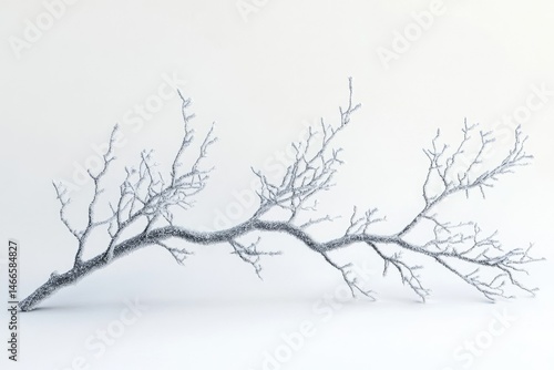 © piyumal, Obraz premium Frost-covered branch isolated on white background, winter scene, minimalist aesthetic.
