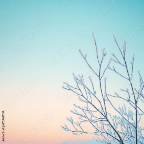 Obraz premium Frost-covered branches silhouetted against a pastel winter sky