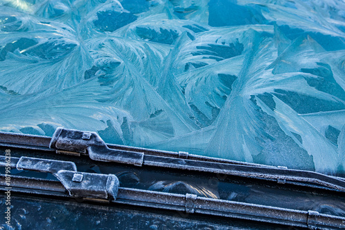 © fottoo, Naklejka premium Frost forms on a car windshield during a cold morning in winter