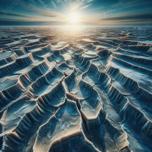 © Bella, Fototapeta premium Frost Heave Field Ground surface buckling and cracking from froz