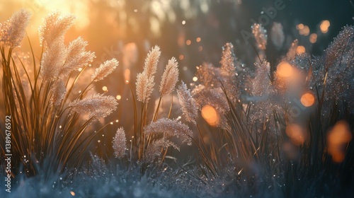 © Roman, Fototapeta premium Frost on grass close-up. Generative AI