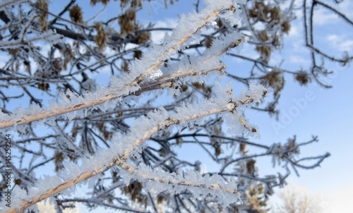 © Lisa, Obraz premium Frost on the tree branches in Saskatchewan, Canada