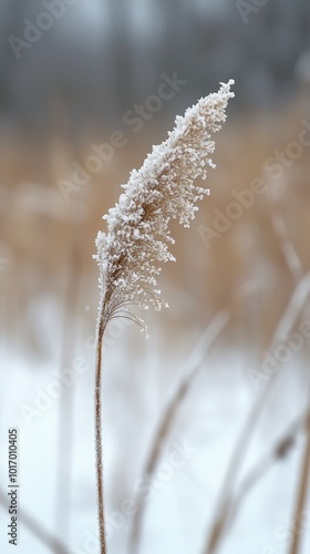 © Atlas, Fototapeta premium Frost-tipped grasses swaying gently in a serene winter landscape at dawn