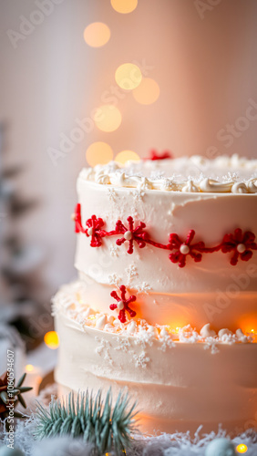 Fototapeta premium frosted cake decorated with red snowflakes