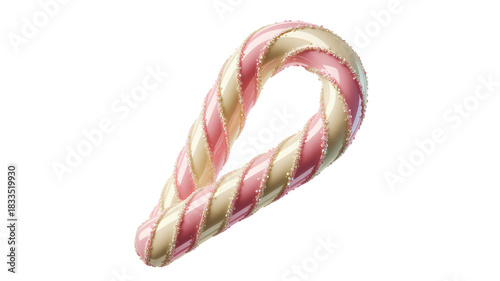 Fototapeta premium Frosted Candy Cane with Crystal Sugar Coating and Soft Pastel Stripes, Isolated Element