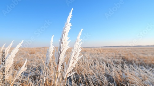 Obraz premium Frosted grass field under clear sky