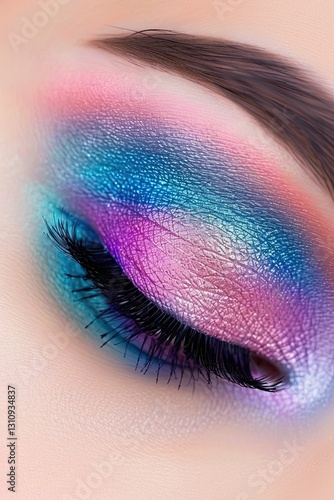 Fototapeta premium Frosted Makeup Featuring Metallic Ice-Blue Eyeshadow and Delicate Icy Glitter...