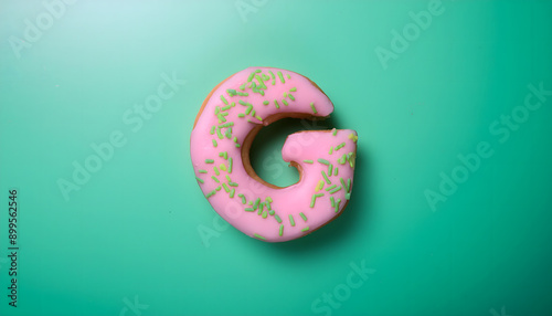 Fototapeta premium Frosted sprinkled donut in the shape of the letter G