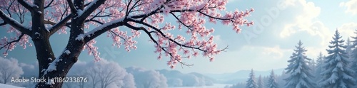 © Withun, Obraz premium Frosted tree branches stretch towards the sky, landscape, branch