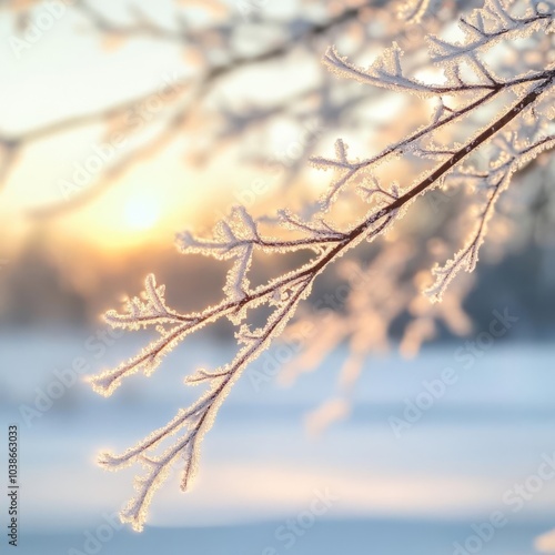 Obraz premium Frosty branches creating intricate patterns in the winter sunlight