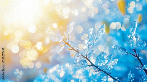 Fototapeta premium Frosty Branches Sparkling Under Sunshine and Beautiful Bokeh Effect