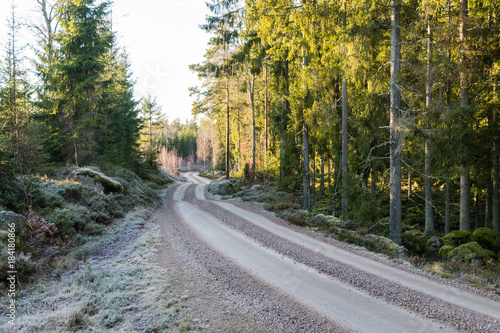 © olandsfokus, Fototapeta premium Frosty gravel road in a forest
