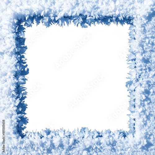 Fototapeta premium Frosty ice crystals form a square frame on white