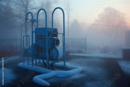 Fototapeta premium frosty mist surrounding cryotherapy equipment, created with generative ai