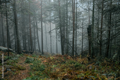 © bartoshd, Obraz premium frosty morning in dark rainy forest