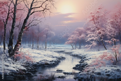 Naklejka premium Frosty Morning Landscapes - Generative AI