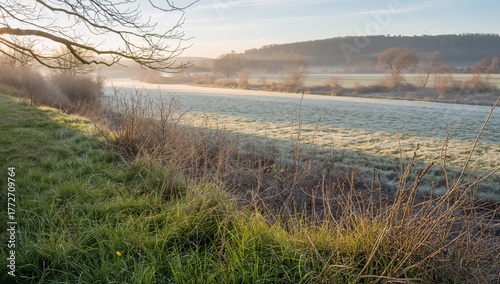 Fototapeta premium Frosty Morning Stroll, highlighting the brisk air and seasonal change