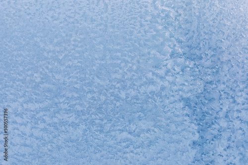 Obraz premium Frosty patterns, icy window. Winter background, selective focus, close-up.