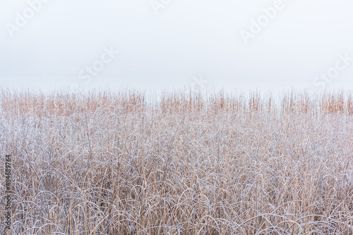 © Mikael, Obraz premium Frosty reeds at misty lake