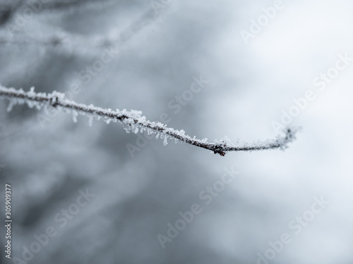 Obraz premium frosty tree branch background in winter