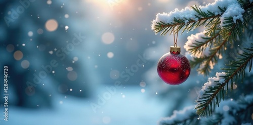 Obraz premium Frosty tree branches with snowflakes and ornaments, decoration, sparkle