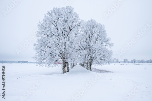 Obraz premium Frosty tree in a wintry landscape