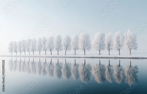 © warunthorn, Fototapeta premium Frosty Trees Reflection.