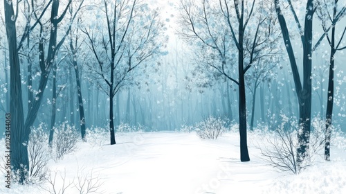 Fototapeta premium Frosty Winter Forest Landscape with Snow-Covered Trees