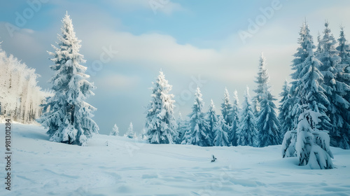 Naklejka premium Frosty Winter Landscape in Snowy Forest