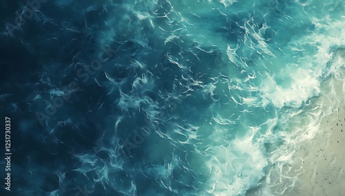 Fototapeta premium Frothy ocean waves churning and swirling in a vibrant turquoise sea creating...