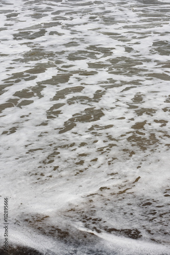Obraz premium Frothy waves on beach - Frothy and foamy sea waves on a tropical beach.