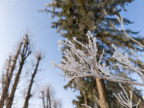Obraz premium Frozen Branches Against Clear Blue Sky