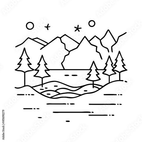 © Sayem, Fototapeta premium frozen lake icon, frozen lake line art - simple line art of frozen lake, perfect for frozen lake logos and icons