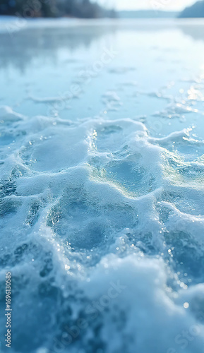 © wajid, Obraz premium Frozen lake surface with natural ice cracks