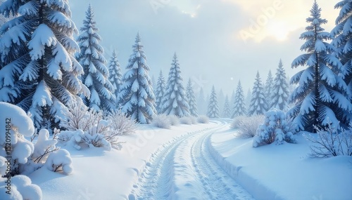 Naklejka premium Frozen landscape blanketed in pristine snow, icy branches glistening under a...