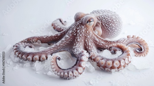 © Matcha_09, Naklejka premium Frozen octopus body with frost, placed on a clean white background