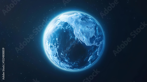 © Thiago, Fototapeta premium Frozen planet with glowing polar lights. Glacial Glow. Illustration