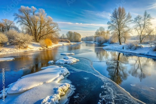 © ทรัพย์ทวี แก้วไพฑูรย, Fototapeta premium Frozen river in winter with ice and snow