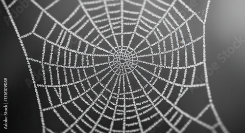 © RAJA, Fototapeta premium Frozen Spiderweb Glistening in Winter Light Creating Intricate Nature Pattern