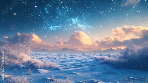 © Larysa, Fototapeta premium Frozen tundra with icy landscapes and a clear