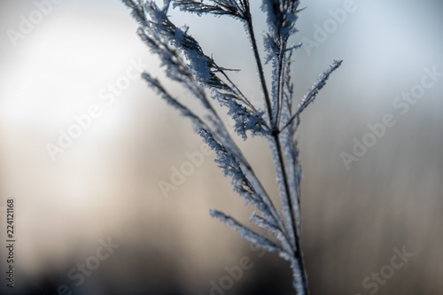 © Martins Vanags, Fototapeta premium frozen vegetation in winter on blur background