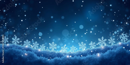 © Jameel, Obraz premium Frozen Wonderland: Sparkling Snowflakes Under a Starry Sky Background