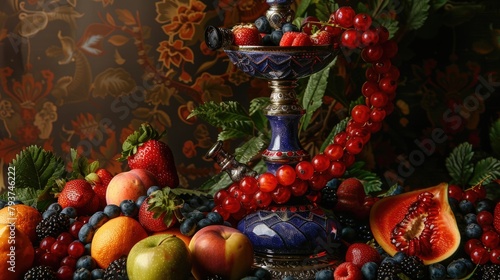 © Anna, Fototapeta premium fruit hookah fruits on a dark background