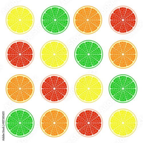 Fototapeta premium Fruit set: lemon, lime, orange, grapefruit. Vector EPS10